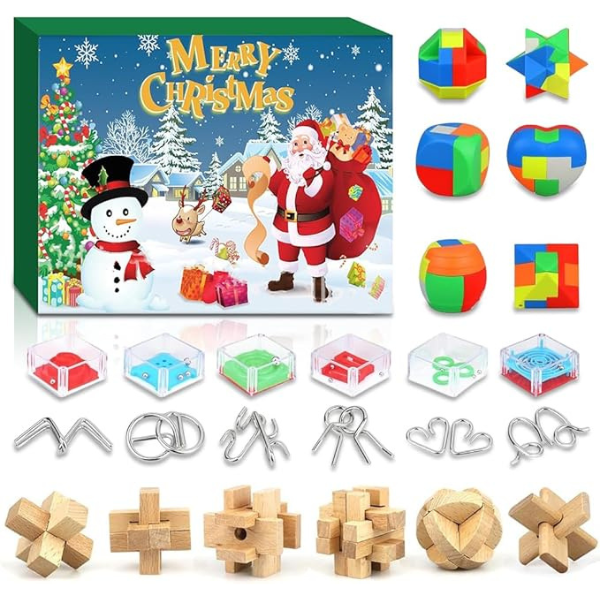 🧠 24 arendavat üllatust – igas kastis peitub erinev mini-pusle, alates Luban lock puslest kuni üheksa rõnga pusleni. Iga päev on uus väljakutse ja saavutus!