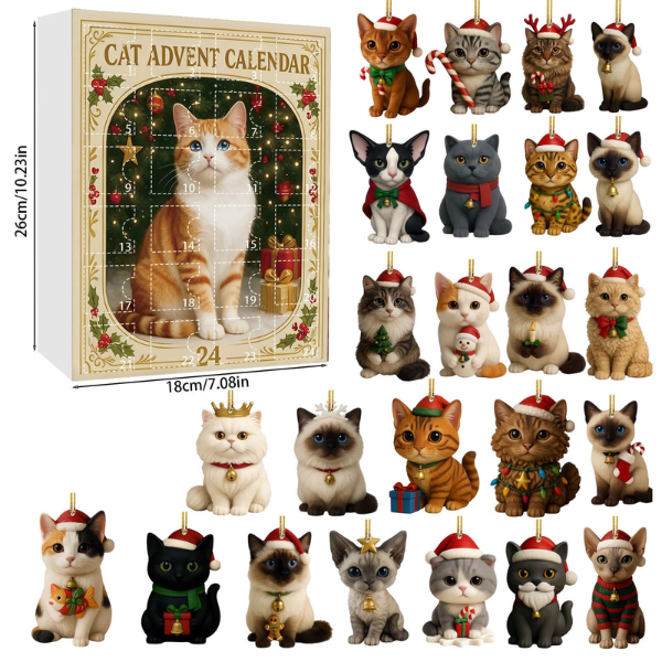 See adventkalender on loodud kõigile, kes armastavad kasse ja jõule. Iga 24 akna taga peitub unikaalne akrüüldekoratsioon erineva kassitõuga – alates karvasest Maine Coonist kuni elegantse Siami kassini.