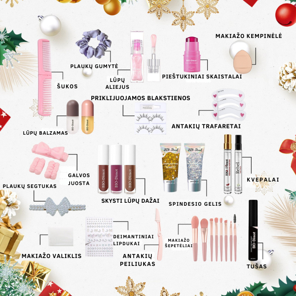 Iga päev avage uus aken ja leidke üllatus – lauvärvid, huulepulgad, läiked või muud meigitooted.